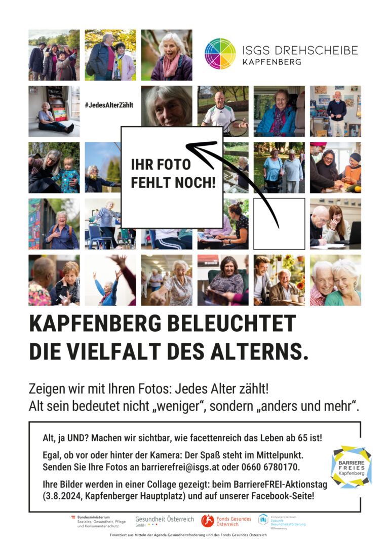 Zeigen wir mit Ihren Fotos aus Kapfenberg: Jedes Alter zählt! Alt sein bedeutet nicht „weniger“, sondern anders und mehr.